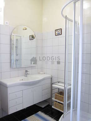 Cet appartement est équipé d'une salle de bain agréable avec des fenêtres. Cette salle d'eau bénéficie du nécessaire pour votre bien-être au quotidien : serviettes de bain, placard, douche séparée, sèche cheveux, radiateur sèche-serviettes. Les toilettes sont séparées de la salle de bain et situées dans une pièce indépendante.