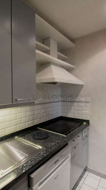 Cet appartement dispose d'une belle cuisine avec du carrelage au sol et tout l'équipement indispensable pour votre quotidien : plaques de cuisson, réfrigerateur, congélateur, four, micro ondes, freezer, hotte, grille pain, bouilloire électrique, cafetière, placard, vaisselle.