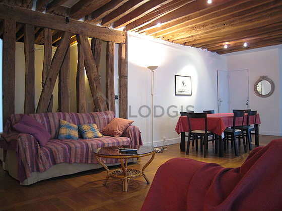 SéjourCet appartement est composé d'un charmant salon avec du parquet au sol et des fenêtres et vue sur rue. Ce salon calme est meublé et équipé pour rendre votre séjour agréable : télé, draps, couettes, 2 fauteuil(s), table à manger, table basse, etagère, 6 chaise(s)1 canapé(s) lit(s) de 140cm.