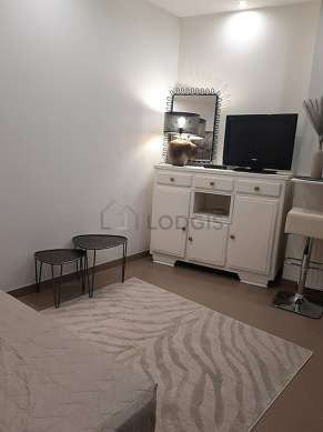 Cet appartement est composé d'un plaisant salon avec du carrelage au sol et des fenêtres et vue sur cour. Ce salon calme est meublé et équipé pour rendre votre séjour agréable : télé, draps, couettes, table à manger, table basse, 1 chaise(s)1 canapé(s) lit(s) de 120cm.