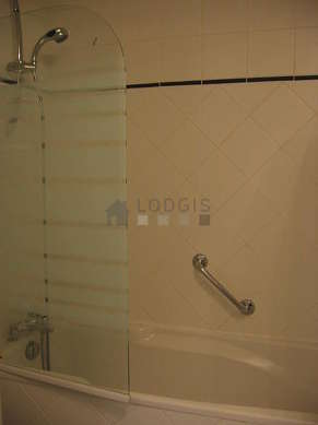 Cet appartement est équipé d'une salle de bain agréable. Cette salle d'eau bénéficie du nécessaire pour votre bien-être au quotidien : serviettes de bain, etagère, placard, baignoire, sèche cheveux. Les toilettes sont séparées de la salle de bain et situées dans une pièce indépendante.