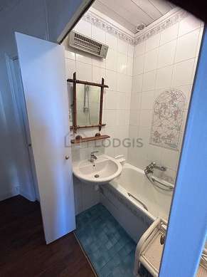 Cet appartement est équipé d'une salle de bain. Cette salle d'eau bénéficie du nécessaire pour votre bien-être au quotidien : serviettes de bain, etagère, baignoire, lavabo. Les toilettes sont séparées de la salle de bain et situées dans une pièce indépendante.