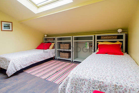 Avec du parquet au sol et des fenêtres cette chambre séduisante offre l'équipement nécessaire pour vous reposer pendant votre séjour : draps, couettes, bureau, commode, placard, 1 chaise(s)1 lit(s) gigogne de 90cm.