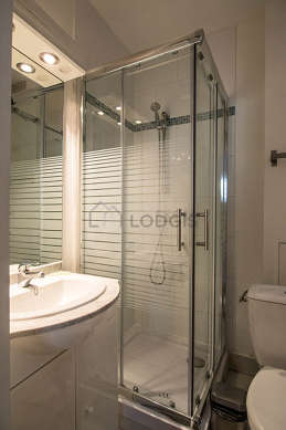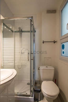Cet appartement est équipé d'une salle de bain agréable et claire avec des fenêtres double vitrage. Cette salle d'eau bénéficie du nécessaire pour votre bien-être au quotidien : serviettes de bain, douche séparée, sèche cheveux, radiateur sèche-serviettes. Les toilettes sont intégrées dans la salle de bain.