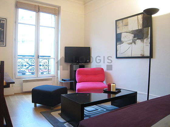 Cet appartement est composé d'un plaisant salon avec du parquet au sol et des fenêtres double vitrage et vue sur rue. Ce salon est meublé et équipé pour rendre votre séjour agréable : télé, 1 fauteuil(s), table à manger, table basse, 4 chaise(s)1 canapé(s) lit(s) de 140cm.