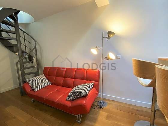 Ce duplex est composé d'un charmant salon avec du parquet au sol et des fenêtres et vue sur cour. Ce salon très calme est meublé et équipé pour rendre votre séjour agréable : télé, canapé, 1 fauteuil(s), table basse, buffet.