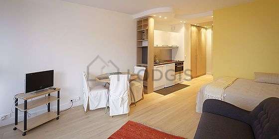 Cet appartement est composé d'un séduisant salon avec du parquet au sol vue sur rue. Ce salon calme est meublé et équipé pour rendre votre séjour agréable : télé, draps, canapé, table à manger, etagère, armoire, placard, 1 chaise(s)1 lit(s) de 140cm.