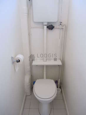 Cet appartement est équipé d'une salle de bain avec des fenêtres. Cette salle d'eau bénéficie du nécessaire pour votre bien-être au quotidien : serviettes de bain, placard, baignoire. Les toilettes sont séparées de la salle de bain et situées dans une pièce indépendante.