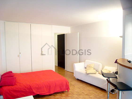 Cet appartement est composé d'un magnifique salon avec du parquet au sol et des fenêtres et vue sur cour. Ce salon très calme est meublé et équipé pour rendre votre séjour agréable : télé, draps, couettes, canapé, table à manger, table basse, penderie, placard, 2 chaise(s)1 lit(s) de 140cm.