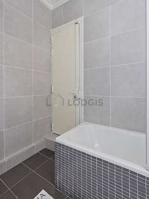 Cet appartement est équipé d'une salle de bain avec des fenêtres. Cette salle d'eau bénéficie du nécessaire pour votre bien-être au quotidien : serviettes de bain, placard, baignoire balnéothérapie, sèche cheveux. Les toilettes sont séparées de la salle de bain et situées dans une pièce indépendante.