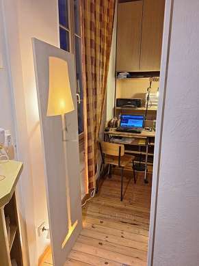 Cet appartement est composé d'un séduisant salon avec du parquet au sol et des fenêtres double vitrage et vue sur rue. Ce salon est meublé et équipé pour rendre votre séjour agréable : télé, table à manger, table basse, etagère, placard, tabouret2 lit(s) mezzanine de 90cm, 1 canapé(s) lit(s) de 120cm.
