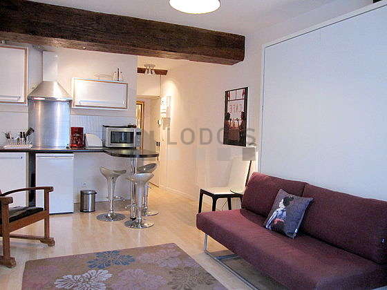 Cet appartement est composé d'un plaisant salon avec du parquet au sol et des fenêtres double vitrage et vue sur rue. Ce salon calme est meublé et équipé pour rendre votre séjour agréable : télé, draps, couettes, canapé, 1 fauteuil(s), table à manger, table basse, bureau, penderie, etagère, placard, 2 chaise(s), tabouret1 lit(s) armoire de 160cm.