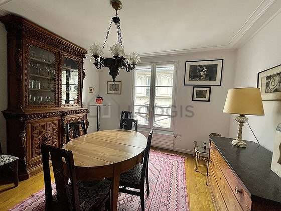 Afin de partager vos repas en toute convivialité pendant votre séjour à Paris, cet appartement dispose d'une magnifique salle à manger qui peut accueillir jusqu'à 4 convives grâce à télé, table à manger, buffet, placard, 6 chaise(s).