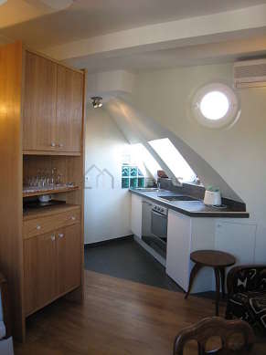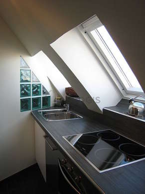 L'ascenseur dessert le 7ème étage puis il faut emprunter un escalier de service afin d'accéder à l'appartement.