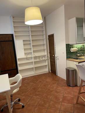 Cet appartement est composé d'un magnifique salon avec du carrelage au sol et des fenêtres et vue sur cour. Ce salon calme est meublé et équipé pour rendre votre séjour agréable : télé, 1 fauteuil(s), table basse, bureau, etagère, vaisselle, 1 chaise(s), meuble tv1 lit(s) mezzanine de 140cm.