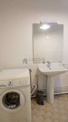 Cet appartement est équipé d'une salle de bain avec des fenêtres. Cette salle d'eau bénéficie du nécessaire pour votre bien-être au quotidien : etagère, baignoire, sèche cheveux. Les toilettes sont séparées de la salle de bain et situées dans une pièce indépendante.