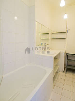 Cet appartement dispose d'une belle cuisine avec du carrelage au sol et tout l'équipement indispensable pour votre quotidien : plaques de cuisson, réfrigerateur, congélateur, four, micro ondes, hotte, grille pain, cafetière, table à manger, placard, vaisselle, 2 chaise(s).