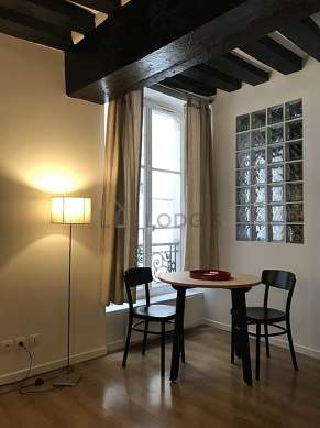 SéjourCet appartement est composé d'un superbe salon avec du parquet au sol et des fenêtres et vue sur cour. Ce salon calme est meublé et équipé pour rendre votre séjour agréable : télé, 1 fauteuil(s), table à manger, table basse, bureau, penderie, 5 chaise(s), lampadaire sur pied, meuble tv, miroir, pouf1 canapé(s) lit(s) de 140cm.