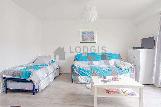 SéjourCet appartement est composé d'un plaisant salon avec du parquet au sol vue sur jardin. Ce salon très calme est meublé et équipé pour rendre votre séjour agréable : télé, draps, couettes, table à manger, table basse, bureau, etagère, placard2 lit(s) de 90cm, 1 canapé(s) lit(s) de 140cm.