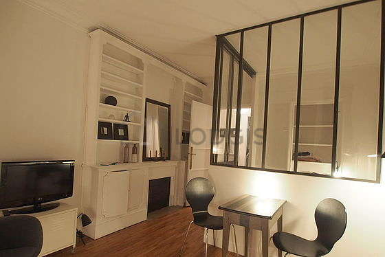 Cet appartement est composé d'un superbe salon avec du parquet au sol et des fenêtres et vue sur cour. Ce salon très calme est meublé et équipé pour rendre votre séjour agréable : télé, draps, couettes, table basse, bureau, penderie, bibliothèque, etagère, placard, 2 chaise(s)1 canapé(s) lit(s) de 140cm.