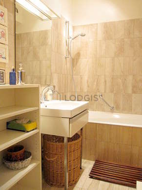 Cet appartement est équipé d'une salle de bain agréable. Cette salle d'eau bénéficie du nécessaire pour votre bien-être au quotidien : serviettes de bain, etagère, placard, baignoire, sèche cheveux. Les toilettes sont séparées de la salle de bain et situées dans une pièce indépendante.