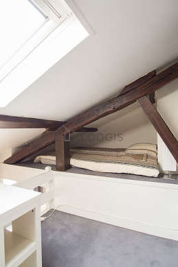 Grâce à une belle hauteur sous plafond, une belle mezzanine a pu être installée dans cet appartement , vous offrant ainsi une vraie pièce supplémentaire équipée de draps, couettes, 1 fauteuil(s), bureau, penderie, placard, 1 chaise(s).