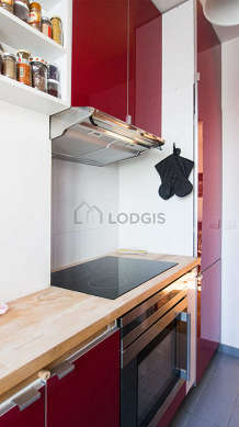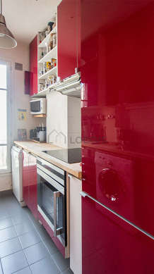Cet appartement dispose d'une magnifique cuisine avec du carrelage au sol et tout l'équipement indispensable pour votre quotidien : plaques de cuisson, réfrigerateur, congélateur, four, micro ondes, hotte, grille pain, bouilloire électrique, cafetière, placard, vaisselle.