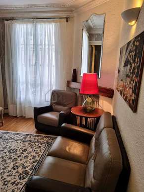 Cet appartement est composé d'un charmant salon avec du parquet au sol et des fenêtres double vitrage et vue sur cour. Ce salon très calme est meublé et équipé pour rendre votre séjour agréable : télé, canapé, 1 fauteuil(s), table à manger, penderie, etagère, placard, 2 chaise(s).