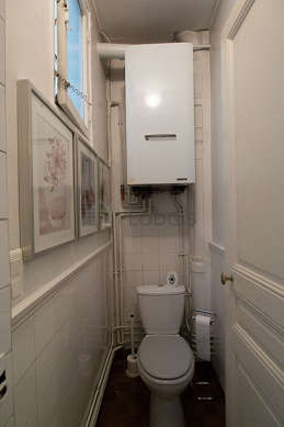 Cet appartement est équipé d'une salle de bain agréable et claire avec des fenêtres. Cette salle d'eau bénéficie du nécessaire pour votre bien-être au quotidien : serviettes de bain, etagère, douche séparée. Les toilettes sont intégrées dans la salle de bain.