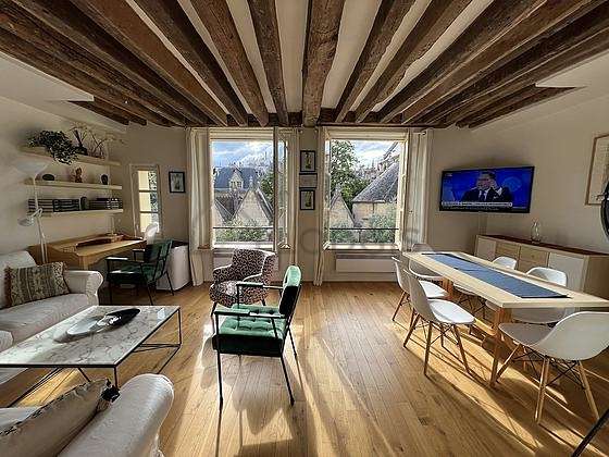 Cet appartement est composé d'un salon des fenêtres. Ce salon est meublé et équipé pour rendre votre séjour agréable.