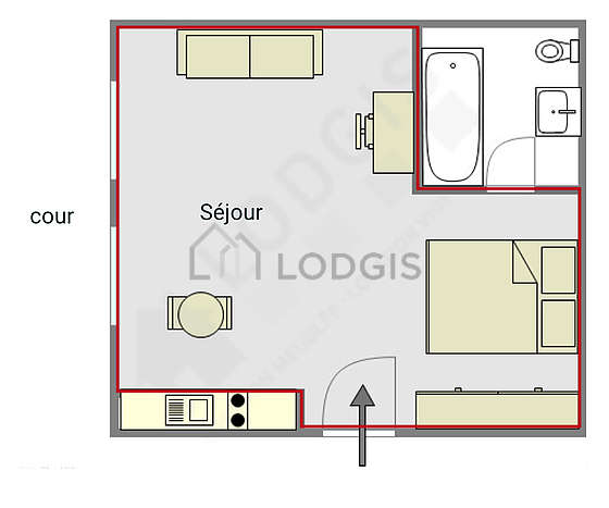 Cet appartement est composé d'un beau salon avec de la moquette au sol et des fenêtres double vitrage et vue sur cour. Ce salon très calme est meublé et équipé pour rendre votre séjour agréable : télé, draps, 1 fauteuil(s), table à manger, table basse, bureau, penderie, etagère, placard, 3 chaise(s)1 canapé(s) lit(s) de 140cm, 1 lit(s) de 140cm.
