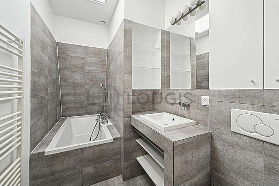 Cette maison individuelle est équipée d'une salle de bain magnifique et très claire avec des fenêtres. Cette salle d'eau bénéficie du nécessaire pour votre bien-être au quotidien : serviettes de bain, placard, baignoire, radiateur sèche-serviettes. Les toilettes sont intégrées dans la salle de bain.