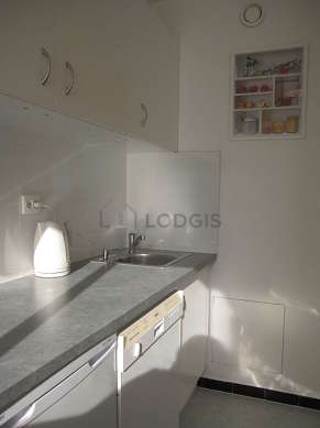 Cet appartement dispose d'une belle cuisine avec du linoleum au sol et tout l'équipement nécessaire pour votre quotidien : plaques de cuisson, réfrigerateur, congélateur, micro ondes, freezer, grille pain, bouilloire électrique, cafetière, placard, vaisselle, robot ménager.
