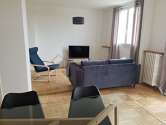 SéjourCet appartement est composé d'un superbe salon avec du parquet au sol et des fenêtres. Ce salon très calme est meublé et équipé pour rendre votre séjour agréable : télé, canapé, 1 fauteuil(s), table à manger, table basse, penderie, etagère, armoire, placard, 4 chaise(s).