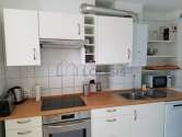 Cet appartement dispose d'une magnifique cuisine avec du carrelage au sol et tout l'équipement indispensable pour votre quotidien : plaques de cuisson, réfrigerateur, congélateur, four, micro ondes, grille pain, etagère, armoire, placard, vaisselle.