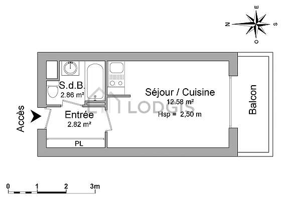 Cet appartement est équipé d'une salle de bain. Cette salle d'eau bénéficie du nécessaire pour votre bien-être au quotidien : placard, baignoire, lavabo. Les toilettes sont intégrées dans la salle de bain.