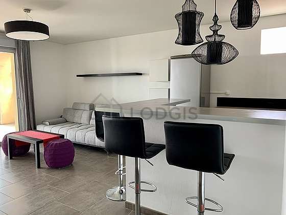 Cet appartement est composé d'un salon des fenêtres. Ce salon est meublé et équipé pour rendre votre séjour agréable.