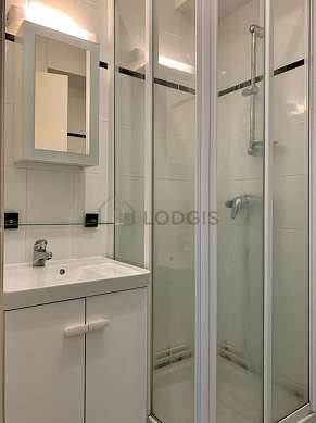 Cet appartement est équipé d'une salle de bain. Cette salle d'eau bénéficie du nécessaire pour votre bien-être au quotidien : etagère, placard, douche séparée, lavabo. Les toilettes sont intégrées dans la salle de bain.
