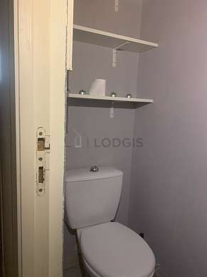 Cet appartement est équipé d'une salle de bain. Cette salle d'eau bénéficie du nécessaire pour votre bien-être au quotidien : etagère, commode, douche séparée, lavabo, miroir. Les toilettes sont intégrées dans la salle de bain.