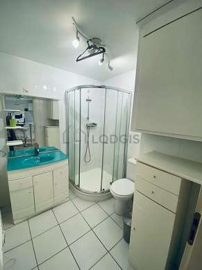 Cet appartement est équipé d'une salle de bain. Cette salle d'eau bénéficie du nécessaire pour votre bien-être au quotidien : etagère, placard, douche séparée, lavabo. Les toilettes sont intégrées dans la salle de bain.