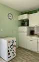 Cet appartement dispose d'une cuisine et tout l'équipement essentiel pour votre quotidien : plaques de cuisson, réfrigerateur, congélateur, micro onde combiné, hotte, cafetière, placard, tabouret, plan de travail.