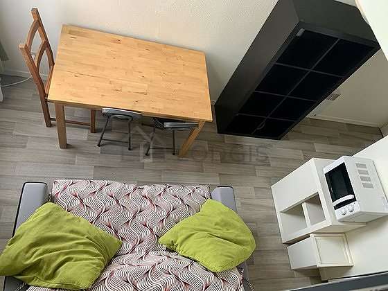 SéjourCet appartement est composé d'un salon des fenêtres. Ce salon est meublé et équipé pour rendre votre séjour agréable : 1 fauteuil(s), table à manger, etagère, 1 chaise(s).