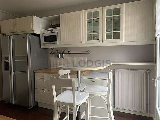 Cet appartement dispose d'une cuisine et tout l'équipement nécessaire pour votre quotidien : plaques de cuisson, réfrigerateur, congélateur, four, micro ondes, freezer, hotte, bouilloire électrique, etagère, buffet, placard, vaisselle, 1 chaise(s), bar.