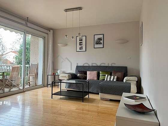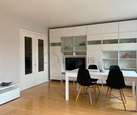 Cet appartement est composé d'un salon des fenêtres double vitrage. Ce salon est meublé et équipé pour rendre votre séjour agréable : télé, canapé, table à manger, table basse, bibliothèque, etagère, commode, placard, 1 chaise(s).