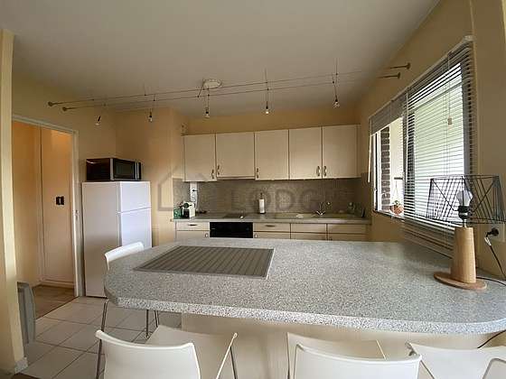 Questo appartamento dispone di una cucina con del piastrelle al suolo e tutto l'equipaggiamento essenziale per la vita quotidiana : piani di cottura, frigorifero, forno, forno microonde, tostapane, bollitore elettrico, caffettiera, tavola da pranzo, armadio, stoviglie.