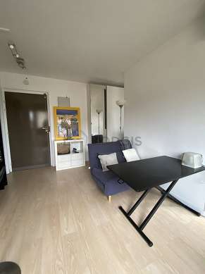 Questo appartamento é composto di un bello salone con del parquet al suolo e delle finestras anti-rumore. Questo salone molto calmo é ammobiliato e equipaggiato per rendere il tuo soggiorno piacevole : televisione, divano, tavolino, guardaroba, biblioteca, armadio.