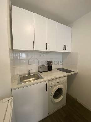 Questo appartamento dispone di una magnifica cucina con del linoleum al suolo e tutto l'equipaggiamento necessario per la vita quotidiana : piani di cottura, frigorifero, forno microonde, tostapane, armadio, stoviglie, 1 sedia (e), bar.