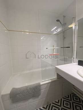 Questo appartamento é equipaggiato di un bagno magnifica. Questo bagno é dotato di tutto il necessario per il tuo benessere quotidiano : vasca da bagno. Il WC é integrato nel bagno