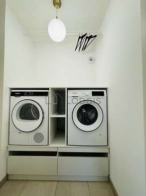 Questo appartamento dispone ugualmentea laundry room dotata de guardaroba, scaffale, airer.