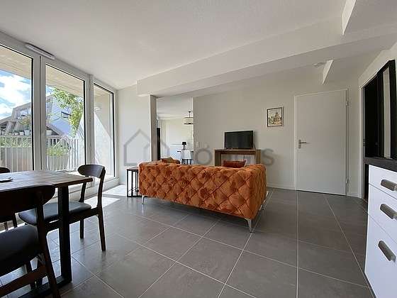 Questo appartamento é composto di un magnifico salone con del piastrelle al suolo e delle finestras anti-rumore e vista su giardino. Questo salone molto calmo é ammobiliato e equipaggiato per rendere il tuo soggiorno piacevole : televisione, divano, 1 poltrona (e), tavolino, scrivania, biblioteca.